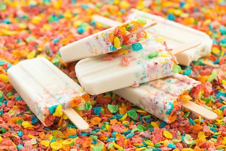 Looks (and tastes) like a party in a pop! Rich creamy vanilla custard with the colorful, fruity crunch of Fruity Pebbles@ cereal. One of our top sellers in any season, for any occasion. | Ingredients: Pop Culture's vanilla custard and Fruity Pebbles®
